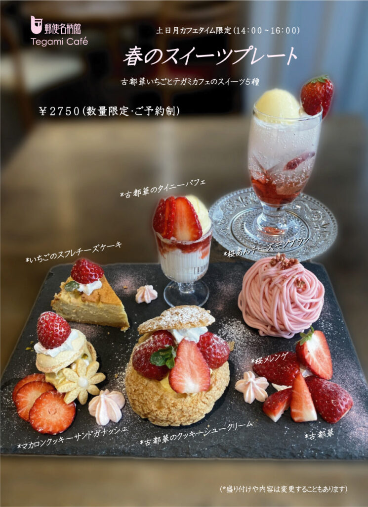 古都華と桜にテガミカフェのスイーツを盛り込んだ、春らんまんのプレートです♪